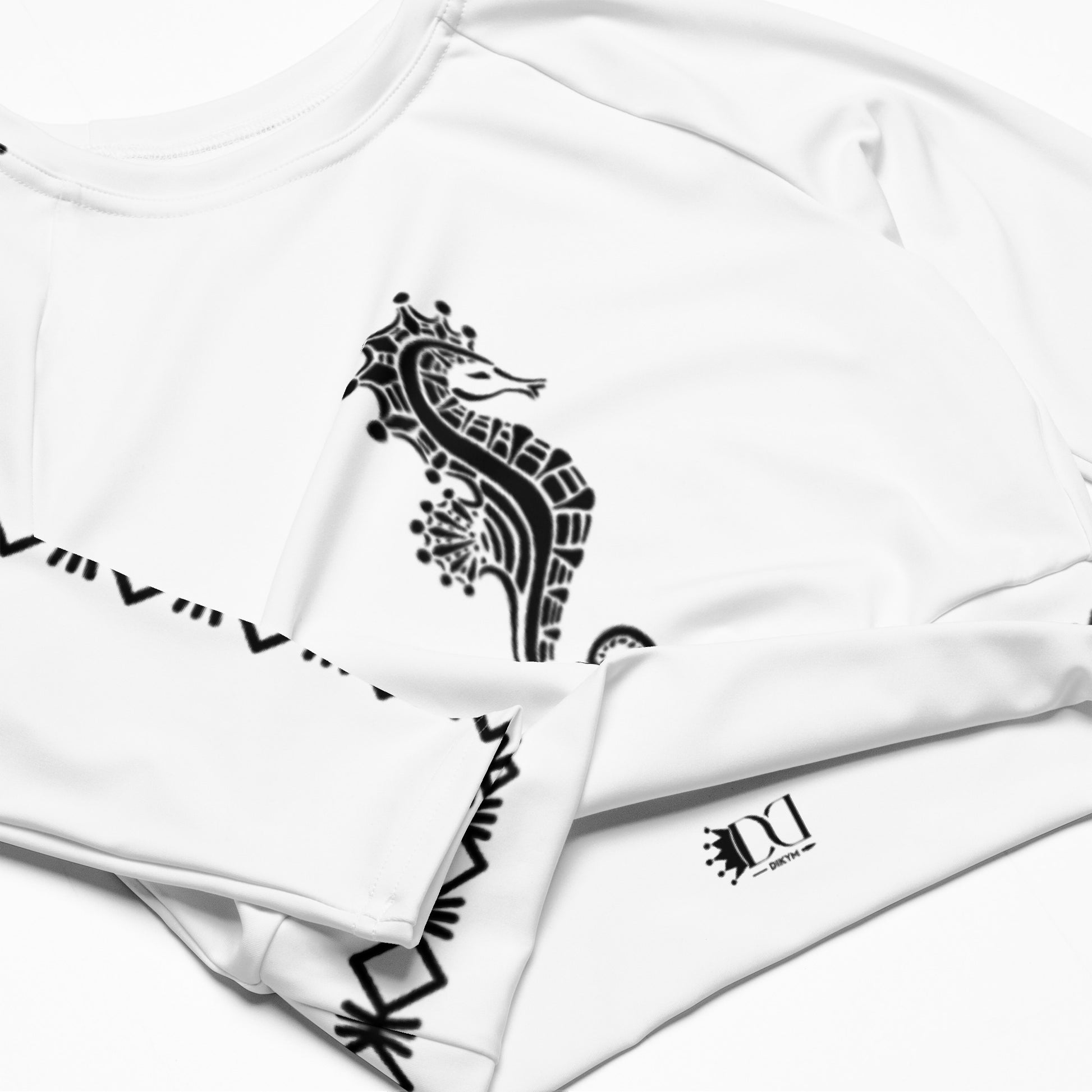 Ce haut court à manches longues est fabriqué en polyester recyclé et en élasthanne, faisant de lui un choix écologique pour la natation, le sport ou les tenues de sport. Le haut court est doté d'une étiquette d'entretien détachable et d'une large ceinture à double épaisseur pour une coupe confortable.