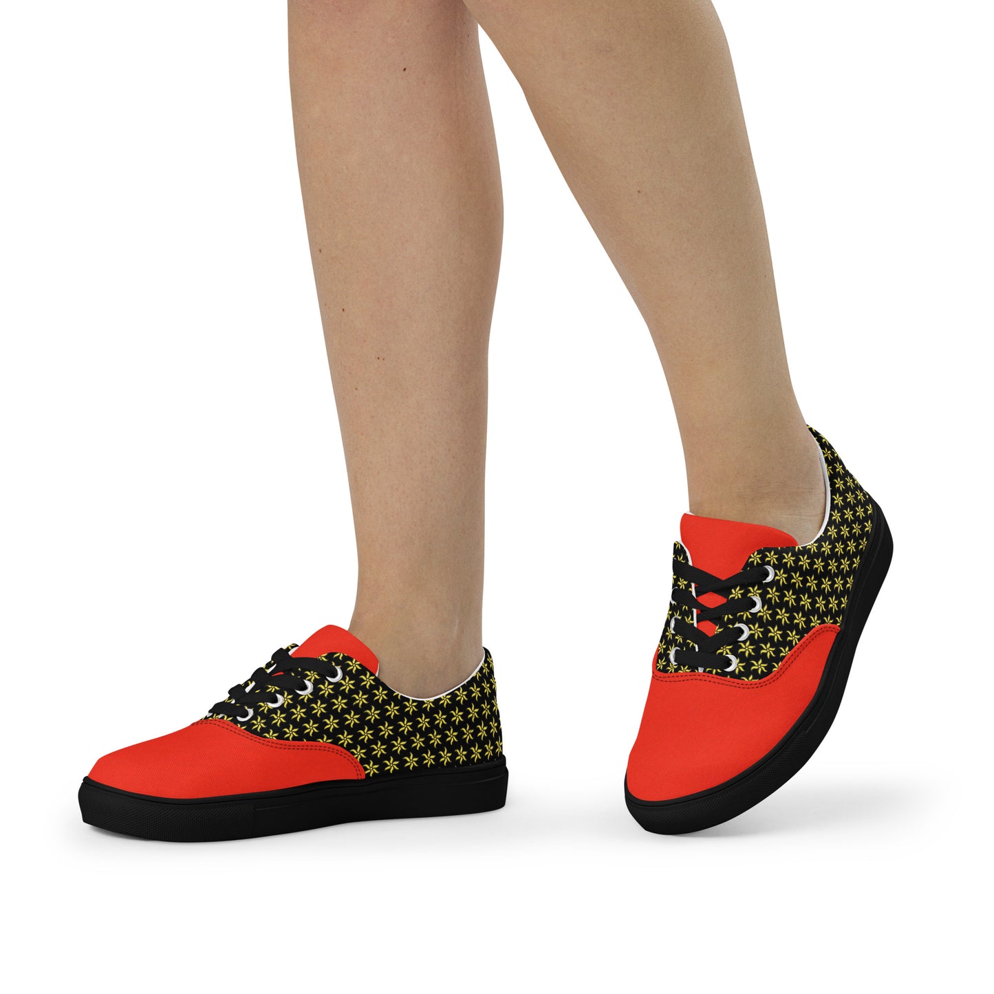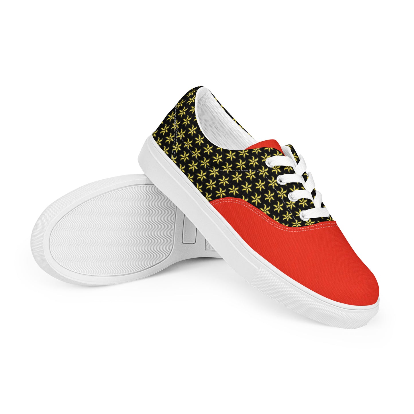Aucune armoire n'est complète sans une paire de baskets. Montez en puissance votre gamme de chaussures avec ces chaussures en toile à lacets pour femme aux couleurs de Mayotte et soyez assurée que votre tenue sera parfaitement élégante.